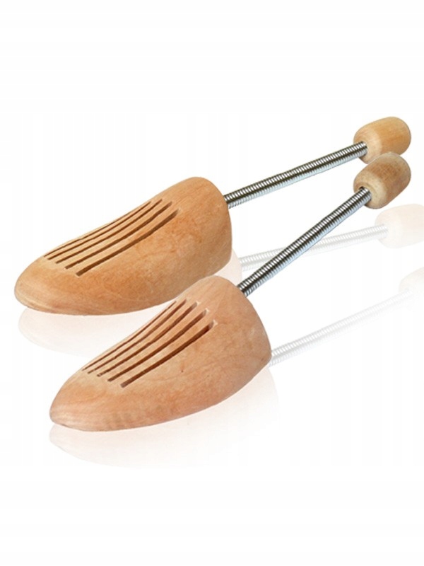Prawidła na sprężynie starannie wykonane z drewna to sprawdzony sposób na zachowanie butów w doskonałej kondycji. Dzięki ich stosowaniu buty zachowują swój naturalny kształt. Dodatkowo wyżłobione otwory ułatwiają cyrkulację wewnątrz butów.